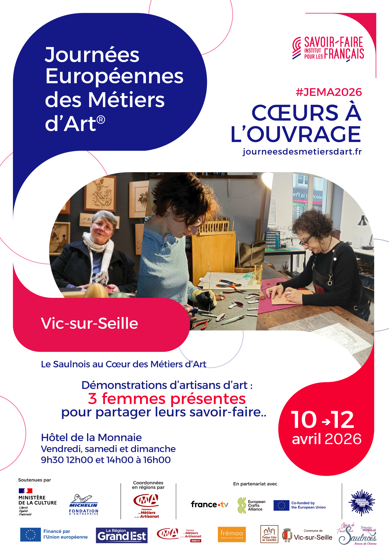 L’Office de Tourisme du Pays du Saulnois vous propose de découvrir Vic-sur-Seille, « petites cités de caractère », qui accueille 3 artisanes les 10, 11 et 12 avril prochain !